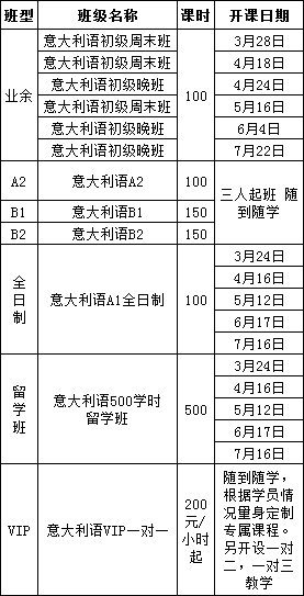 招生对象:适合意大利语零基础初学者,欲赴意大利语留学的学生(马可波罗计划、图兰朵计划、国际生)