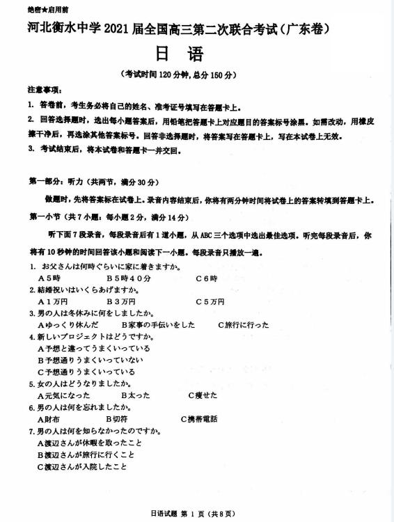 #石家庄高考日语培训,#石家庄高考日语,#高考日语真题,#历年高考日语真题