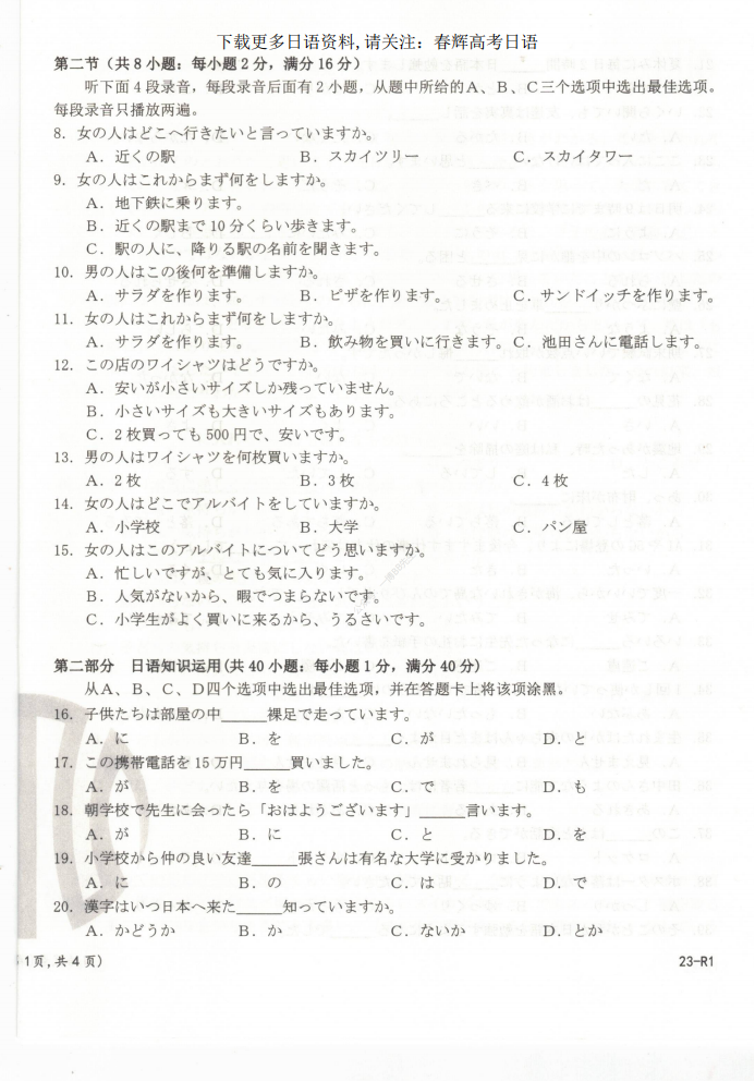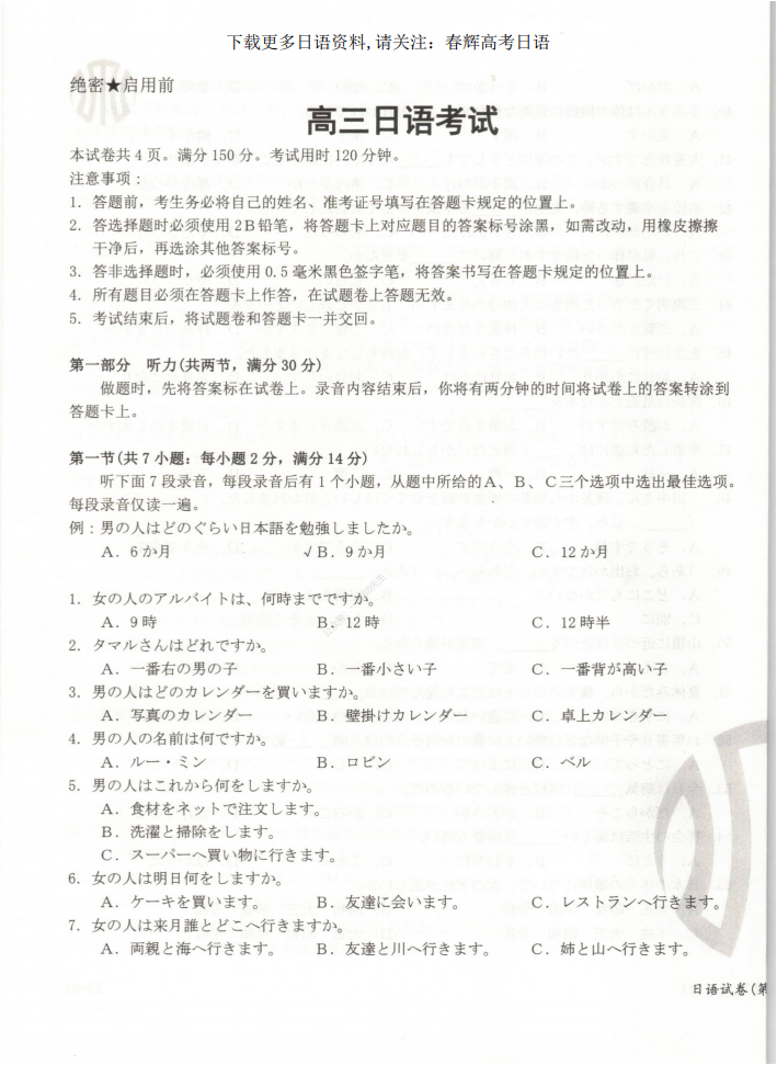 全国各地高考日语联考题+真题听力+作文等免费资料,