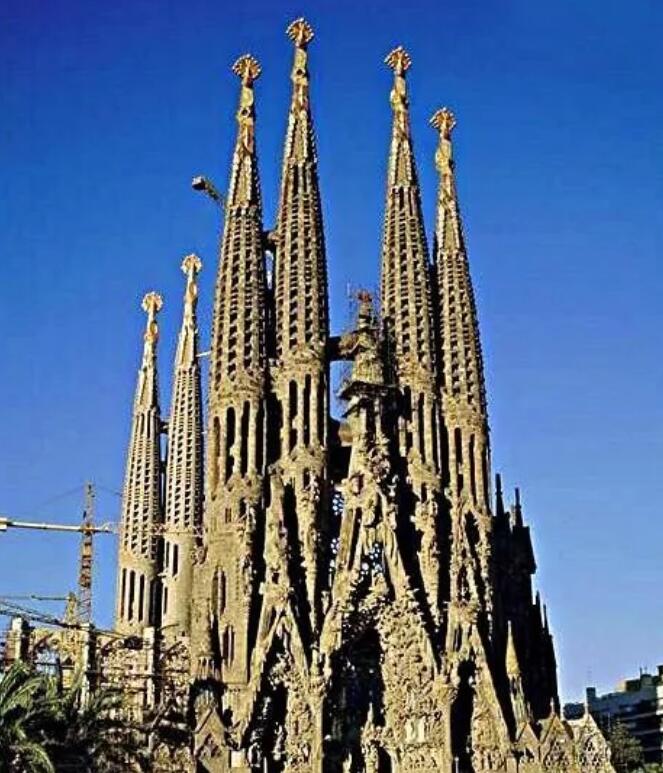 高迪曾就学于巴塞罗那省立建筑学校,毕业后初期作品近似华丽的维多利亚式,后采用历史风格,属哥特复兴的主流。最早接受的主要委托项目是完成巴塞罗那的圣家族教堂,高迪去世时仅完成一个耳堂和四个塔楼之一。高迪曾经说:“直线属于人类,而曲线归于上帝。”圣家族大教堂的设计完全没有直线和平面,而是以螺旋、锥形、双曲线、抛物线各种变化组合成的充满韵律动感的建筑。无论你身处巴塞罗那的哪一方,只要抬起头就能看到它。这座教堂从高迪在世时直到现在都在不停地建造,已经一个多世纪了,仍未造完,在它高高的塔顶上仍是布满了脚手架。整个建筑华美异常,令人叹为观止,是建筑史上的奇迹,有传言说,圣家堂是世界上唯一尚未完工就被列为世界遗产的建筑物。《每日邮报》称,圣家堂预计将在2026年高迪逝世一百周年时完工。完工后,它将成为世界上最高的教堂。