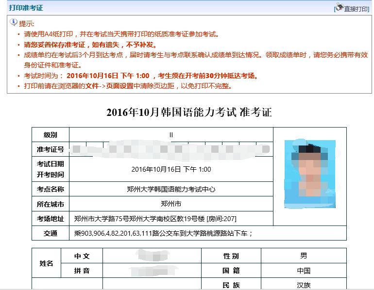 4. 只要打印出来考生信息就可以,下面的“重要提示”打印与否都可以。