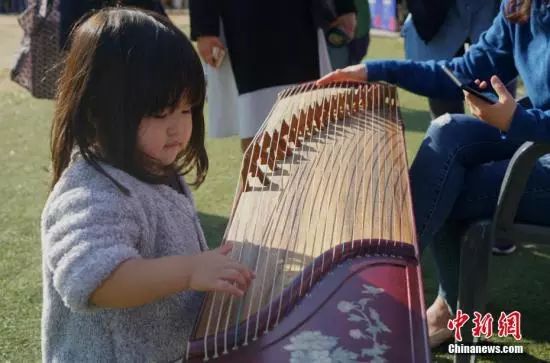 图为当地儿童体验中国传统乐器。中新社记者 曾鼐