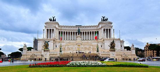 威尼斯广场上最引人注目,也是地标性建筑的就是被当地人称为“结婚蛋糕”或者“打字机”的维托里安诺纪念堂(Monumento a Víctor Manuel II),为纪念意大利的统一以及促成其统一的埃曼努埃尔二世而建,几乎就坐落在罗马城的几何中心,通体是一座白色大理石建筑。