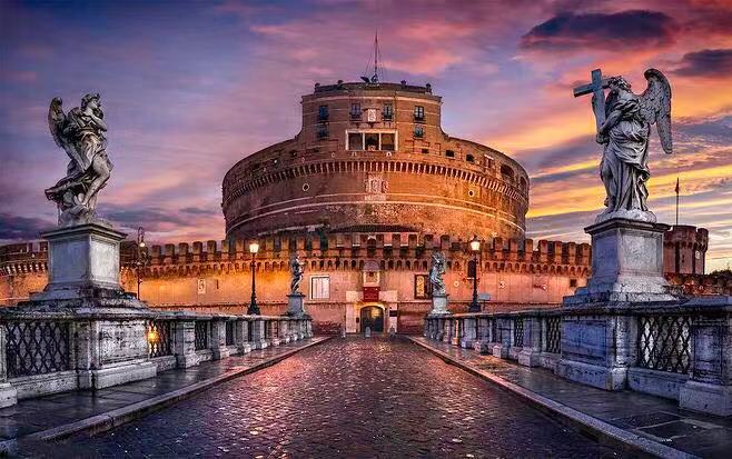 圣天使堡内本为哈德良皇帝建造的家族墓园,后在公元6世纪改建为教皇堡垒,据说公元590年,教皇格利高里在此堡上空看见天使,后将其命名为圣天使堡。